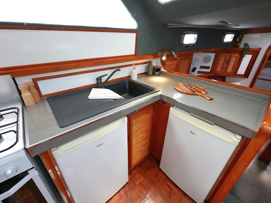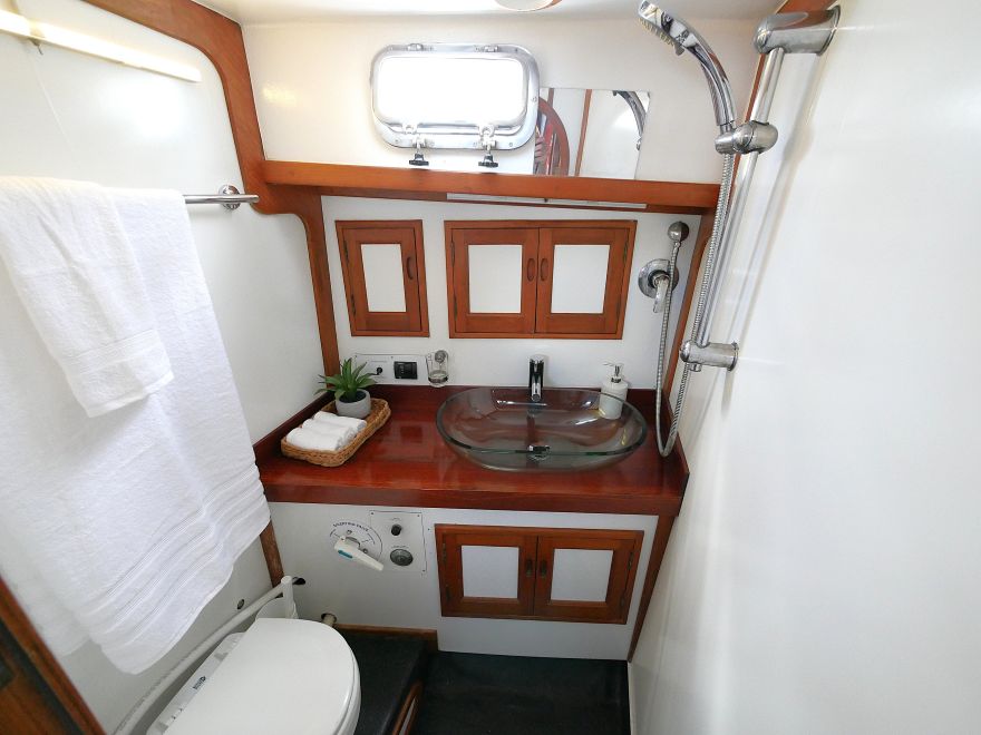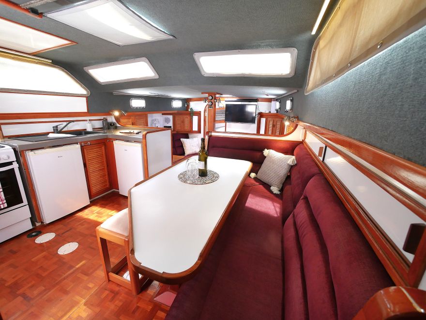 Equipped with a watermaker, solar panels, generator, 1,000 L water, 1,200 L fuel, and a bow thruster, she’s ready for extended cruising or comfortable liveaboard life. A major 2019 refit ensures she’s refreshed and ready to go.