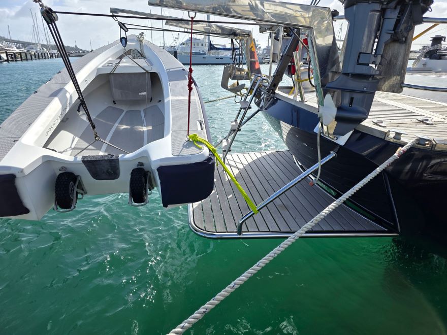 • Custom stainless & teak boarding platform with swim ladder (2023)