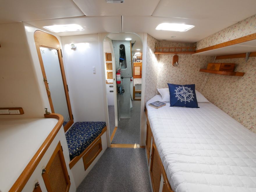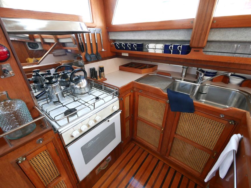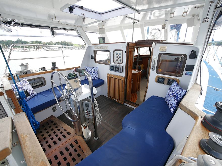 Below deck, English Oak and native New Zealand timbers create an interior that is both warm and highly functional comfortable for living aboard, yet entirely suited to passage making. She has remained with the same owners for over 20 years, sailing widely throughout the South Pacific before settling in the Bay of Islands a quiet but convincing endorsement of her capability.