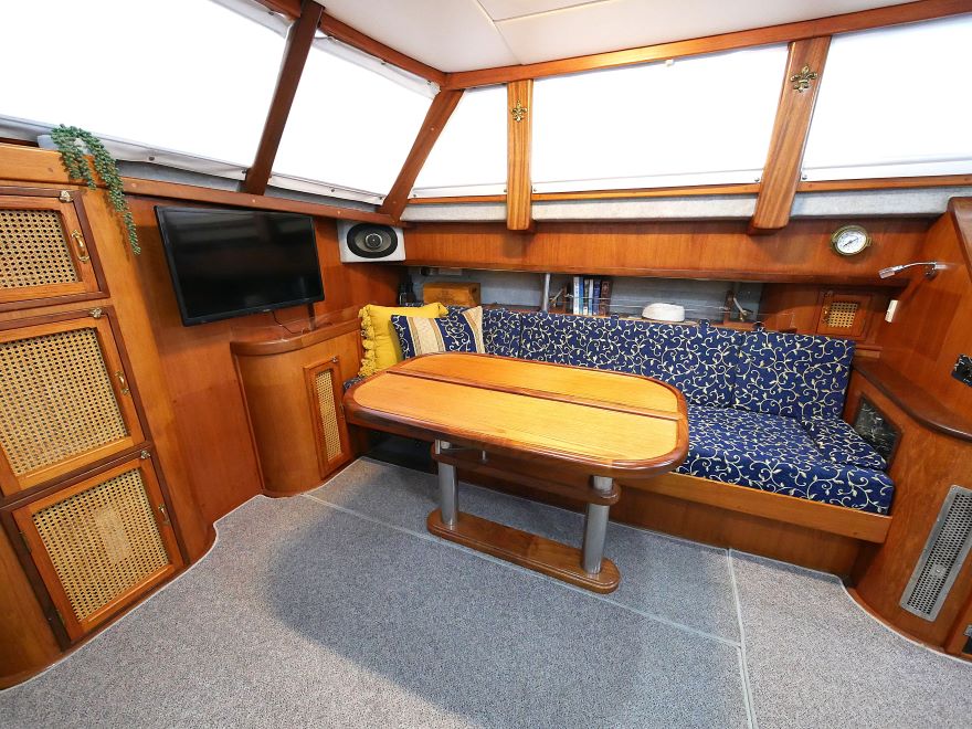 Her electrically operated lifting keel provides genuine versatility allowing her to settle securely upright on a purpose-built support strip when raised, while delivering a 2.3m draft for offshore performance when lowered. Generous tankage and well-developed onboard power systems support extended independent cruising.